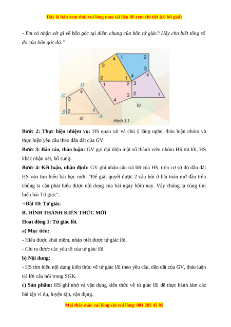 - Chỉ ra được các yếu tố của tứ giác lồi. b) Nội dung: