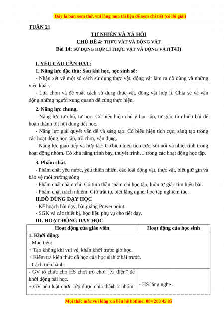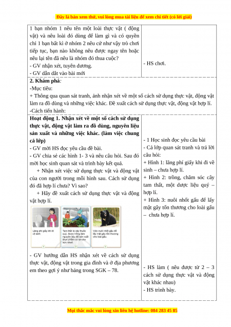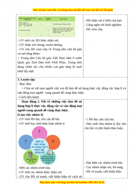Giáo án Tự nhiên và xã hội 3 Cánh diều Bài 14: Sử dụng hợp lí thực vật và động vật (Tiết4)