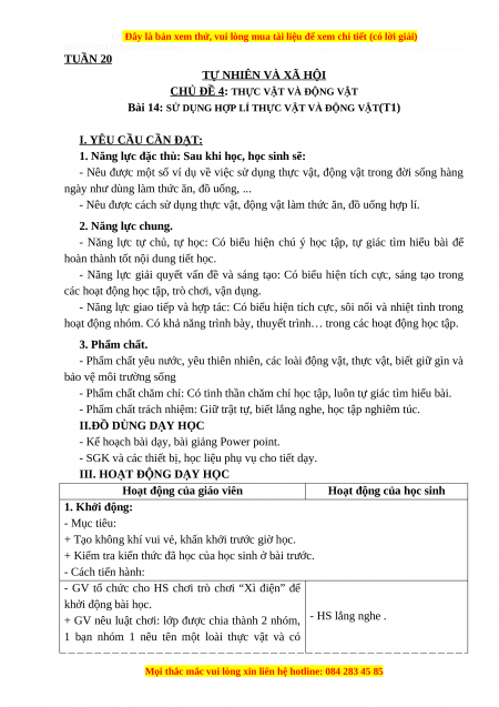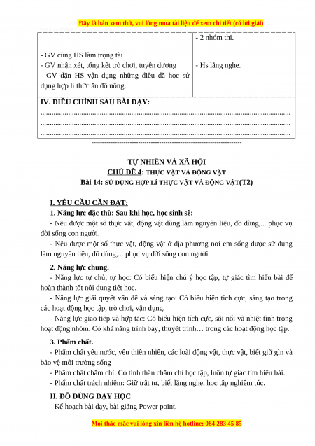 - Nêu được một số ví dụ về việc sử dụng thực vật, động vật trong đời sống hàng