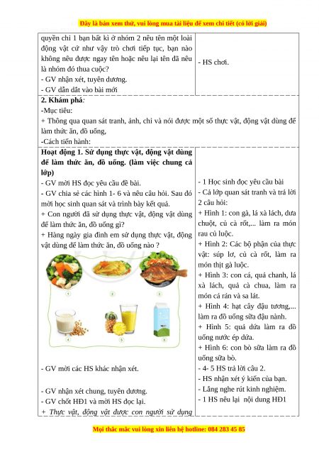 + Nêu được cách sử dụng thực vật, động vật làm thức ăn, đồ uống hợp lí.