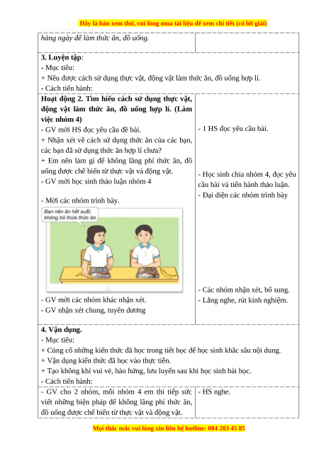 + Nêu được cách sử dụng thực vật, động vật làm thức ăn, đồ uống hợp lí. - Cách tiến hành: