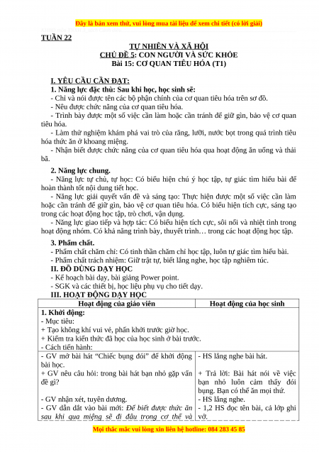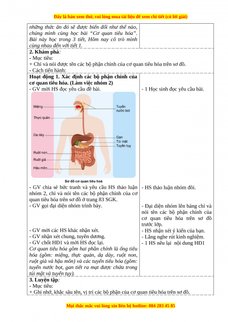 Giáo án Tự nhiên và xã hội 3 Cánh diều Bài 15: Cơ quan tiêu hóa