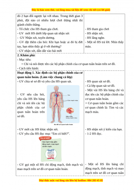 + Chỉ và nói được tên các bộ phận chính của cơ quan tuần hoàn trên sơ đồ. - Cách tiến hành:
