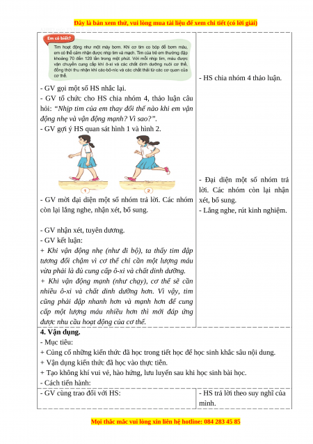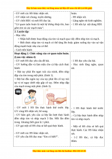 - Nhận biết được hoạt động của tim và mạch qua việc đếm nhịp tim và mạch.