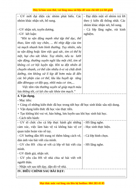 + Nhận biết được một số việc cần làm hoặc cần tránh để giữ gìn, bảo vệ cơ quan tuần hoàn. - Cách tiến hành: