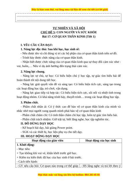 Bài 17: CƠ QUAN THẦN KINH (Tiết 1)