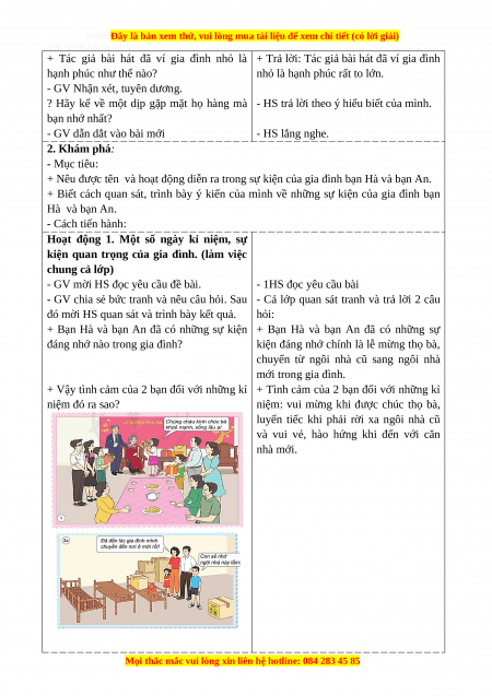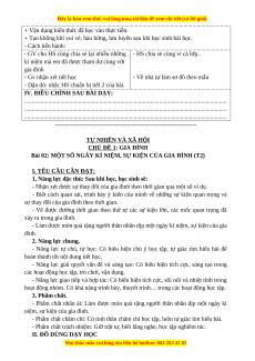 Giáo án Tự nhiên và xã hội 3 Cánh diều Bài 2: Một số ngày kỉ niệm, sự kiện của gia đình