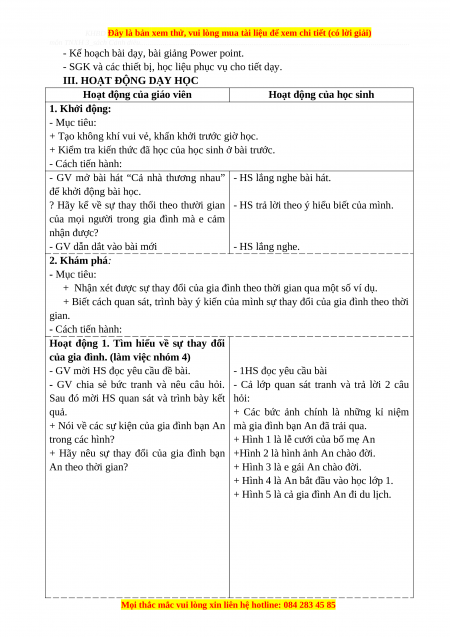 sự thay đổi của gia đình theo thời gian. 2. Năng lực chung.