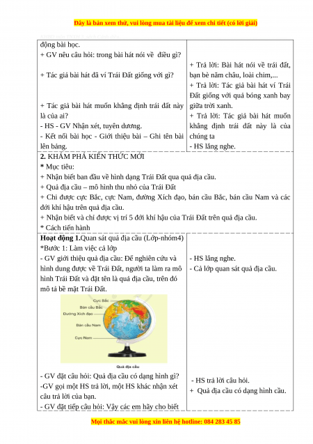- GV giới thiệu quả địa cầu: Để nghiên cứu và