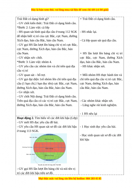 + Nhận biết ban đầu về hình dạng Trái Đất qua quả địa cầu.