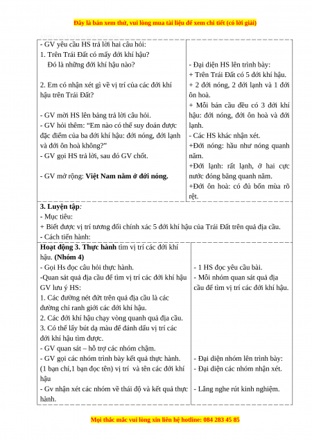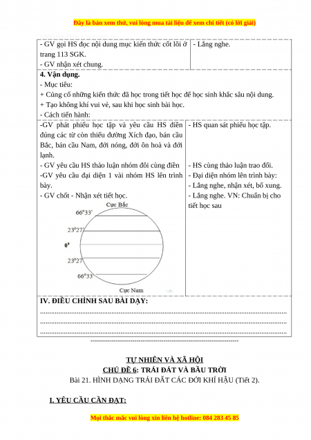 Bài 21. HÌNH DẠNG TRÁI ĐẤT CÁC ĐỚI KHÍ HẬU (Tiết 2).