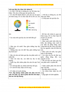 + Hãy chỉ trên mô hình quả địa cầu phần nước và + Các màu còn lại chỉ đất, bao phần đất.