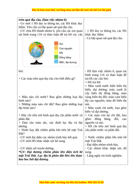 SGK do GV chia sẻ màn hình và trả lời các câu ở SGK trang 116 và trả lời các hỏi: