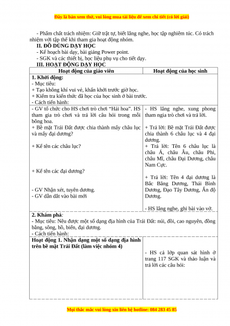 - Mục tiêu: Nêu được một số dạng địa hình của Trái Đất: núi, đồi, cao nguyên, đồng