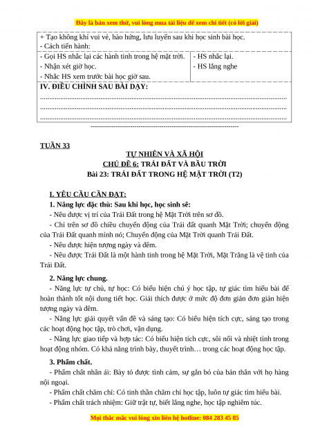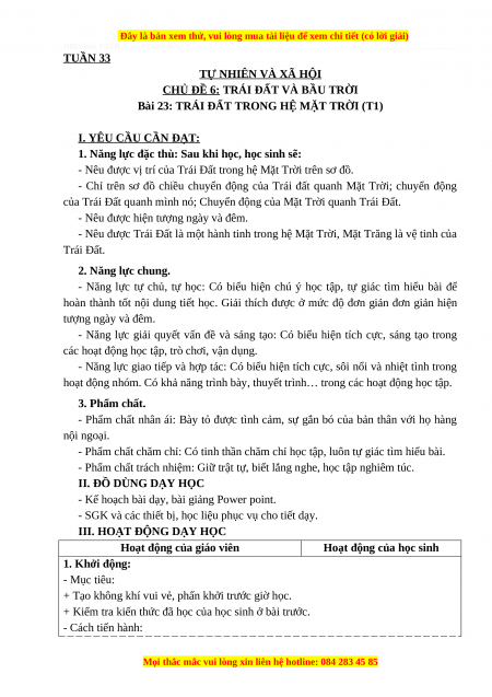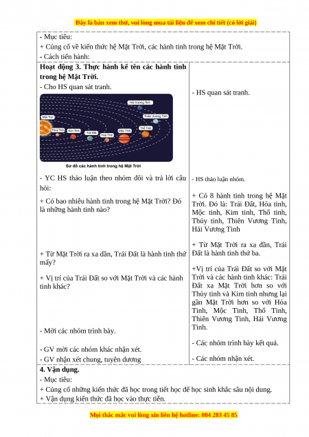 Giáo án Tự nhiên và xã hội 3 Cánh diều Bài 23: Trái đất trong hệ mặt trời