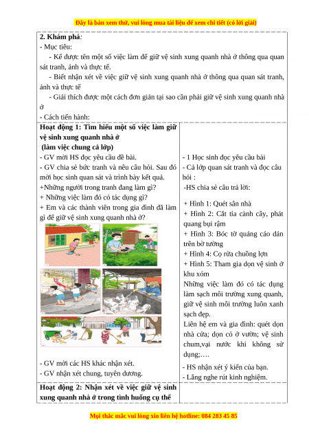 - Giải thích được một cách đơn giản tại sao cần phải giữ vệ sinh xung quanh nhà ở - Cách tiến hành: