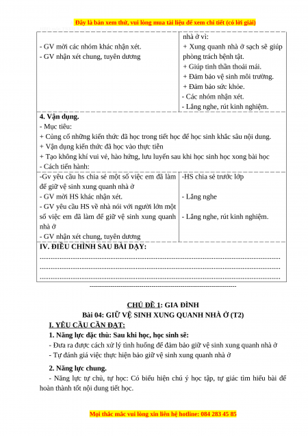 - Làm được một số việc phù hợp để giữ vệ sinh xung quanh nhà ở 2. Năng lực chung.