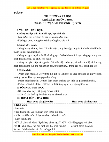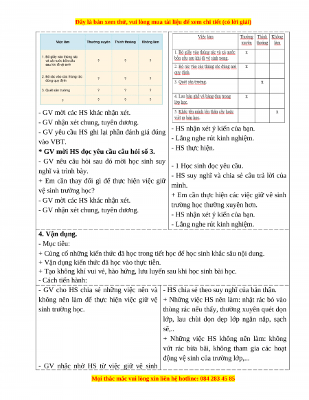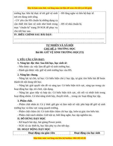 - Đánh giá được việc giữ vệ sinh trường học của HS. 2. Năng lực chung.