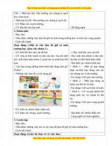 - Phẩm chất nhân ái: Có ý thức giữ gìn và làm một số việc phù hợp để giữ vệ sinh