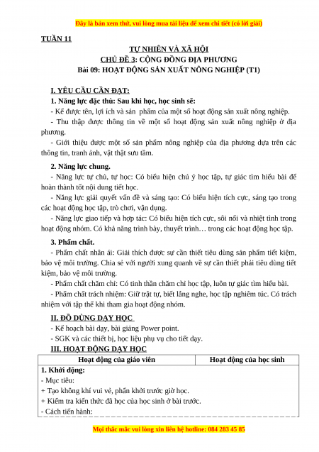 Bài 09: HOẠT ĐỘNG SẢN XUẤT NÔNG NGHIỆP (T1) I. YÊU CẦU CẦN ĐẠT: