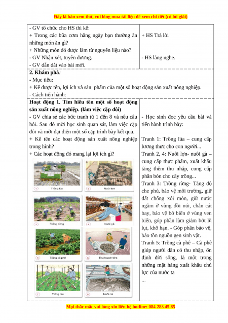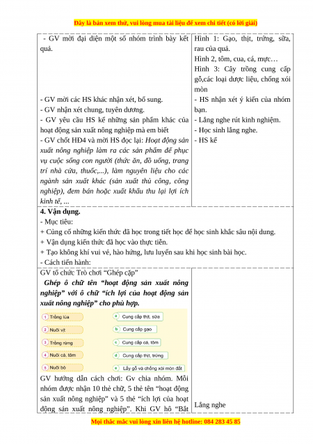 - Kể được tên, lợi ích và sản phẩm của một số hoạt động sản xuất nông nghiệp.