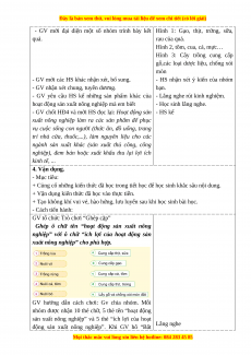 + Kể được tên, lợi ích và sản phẩm của một số hoạt động sản xuất nông nghiệp. - Cách tiến hành: