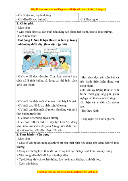- Giải thích được sự cần thiết tiêu dùng sản phẩm tiết kiệm, bảo vệ môi trường.