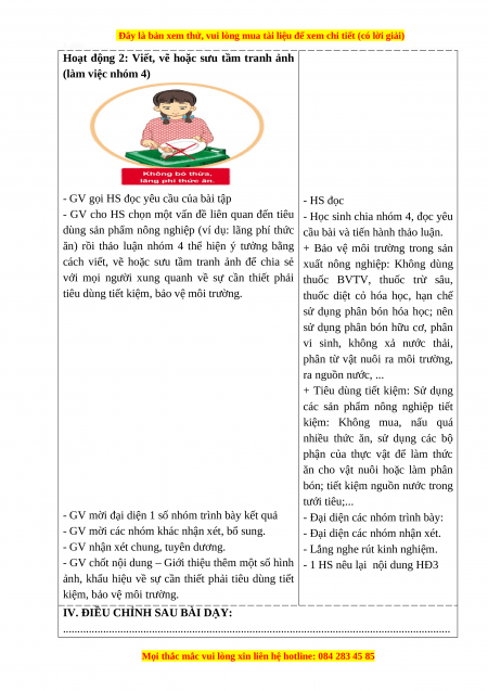 ăn) rồi thảo luận nhóm 4 thể hiện ý tưởng bằng + Bảo vệ môi trường trong sản