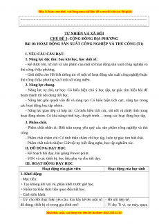 Bài 10: HOẠT ĐỘNG SẢN XUẤT CÔNG NGHIỆP VÀ THỦ CÔNG (T1)