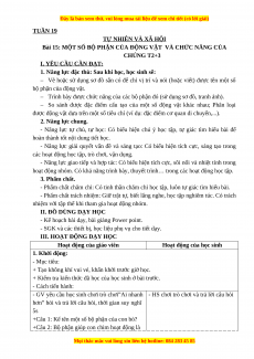 Bài 15: MỘT SỐ BỘ PHẬN CỦA ĐỘNG VẬT VÀ CHỨC NĂNG CỦA CHÚNG T2+3 I. YÊU CẦU CẦN ĐẠT:
