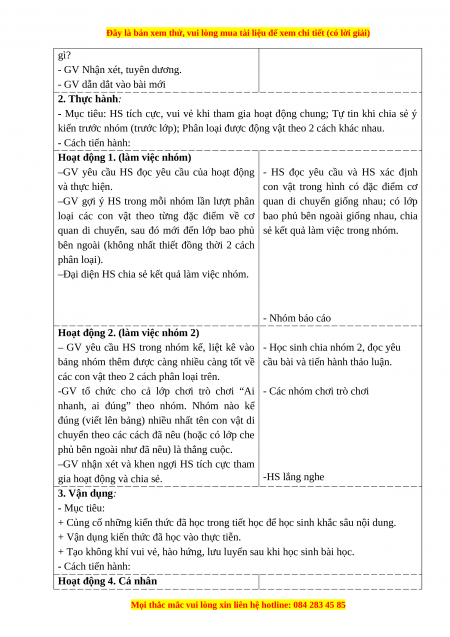 kiến trước nhóm (trước lớp); Phân loại được động vật theo 2 cách khác nhau. - Cách tiến hành: