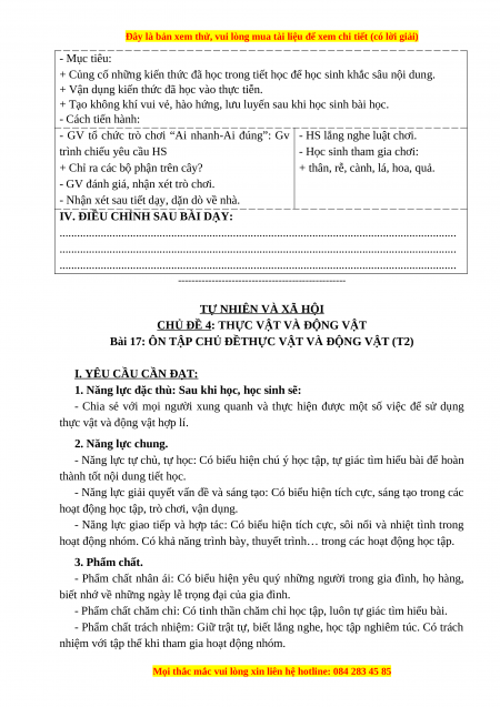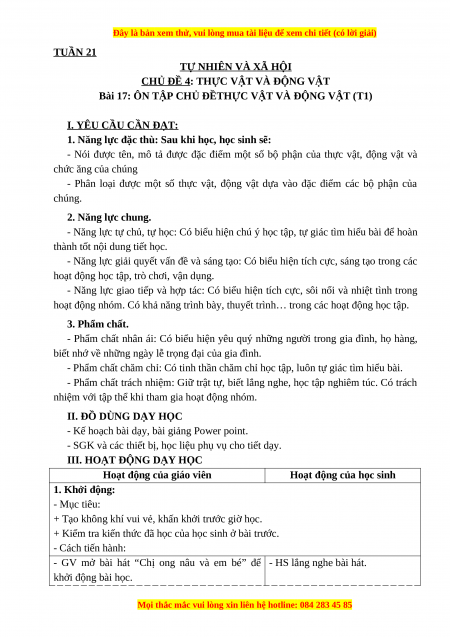Bài 17: ÔN TẬP CHỦ ĐỀTHỰC VẬT VÀ ĐỘNG VẬT (T1) I. YÊU CẦU CẦN ĐẠT:
