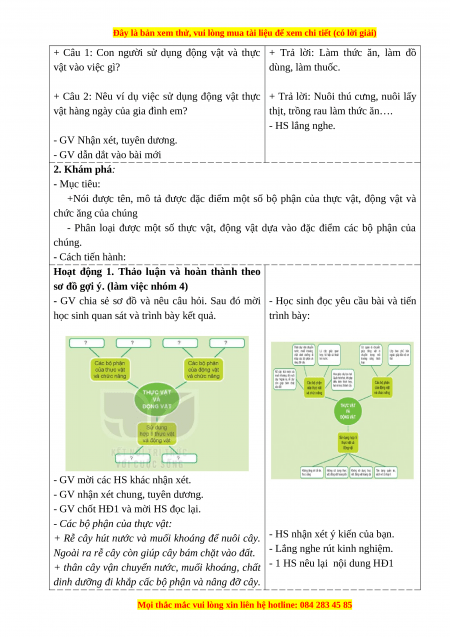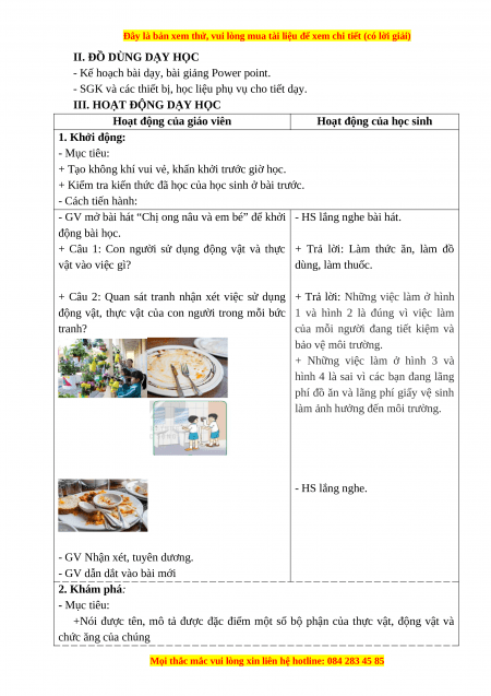 - Nói được tên, mô tả được đặc điểm một số bộ phận của thực vật, động vật và