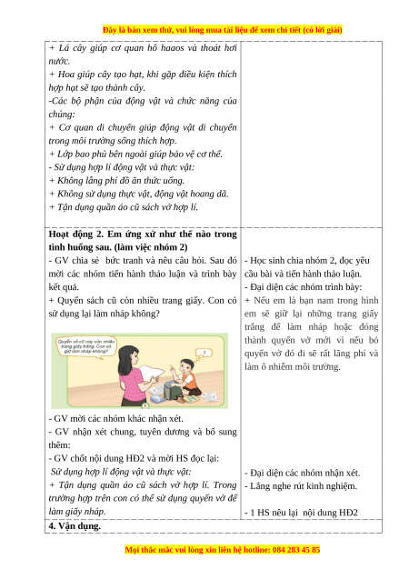 thực vật và động vật hợp lí. 2. Năng lực chung.
