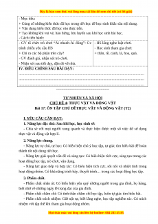 Bài 17: ÔN TẬP CHỦ ĐỀTHỰC VẬT VÀ ĐỘNG VẬT (T1)