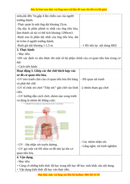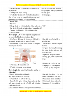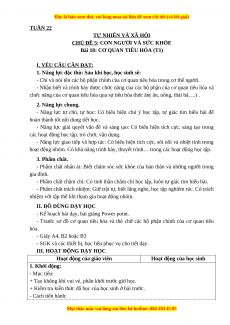 - Mục tiêu: +Nhận biết được chức năng của cơ quan tiêu hóa và các bộ phận của cơ