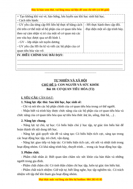 Giáo án Tự nhiên và xã hội 3 Kết nối tri thức Bài 18: Cơ quan tiêu hóa