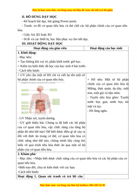 cơ quan tiêu hóa (Làm việc theo cặp)