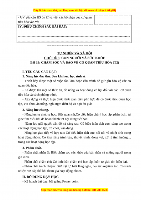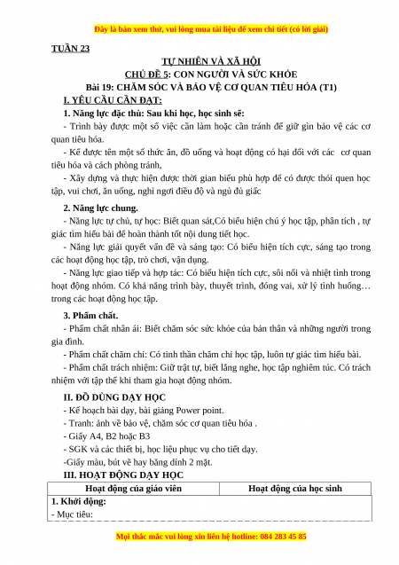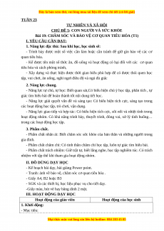 Bài 19: CHĂM SÓC VÀ BẢO VỆ CƠ QUAN TIÊU HÓA (T1) I. YÊU CẦU CẦN ĐẠT: