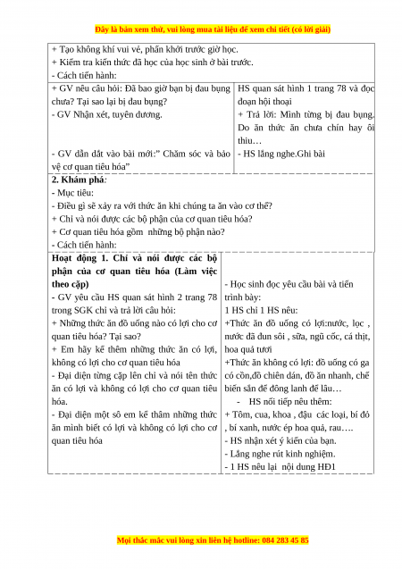 - GV dẫn dắt vào bài mới:” Chăm sóc và bảo - HS lắng nghe.Ghi bài vệ cơ quan tiêu hóa” 2. Khám phá: - Mục tiêu: