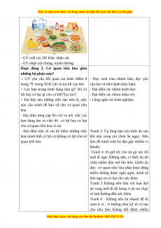 - Kể được tên một số thức ăn, đồ uống và hoạt động có hại đối với các cơ quan