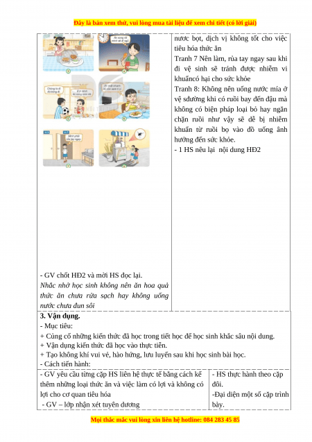 thức ăn chưa rửa sạch hay không uống nước chưa đun sôi 3. Vận dụng. - Mục tiêu: