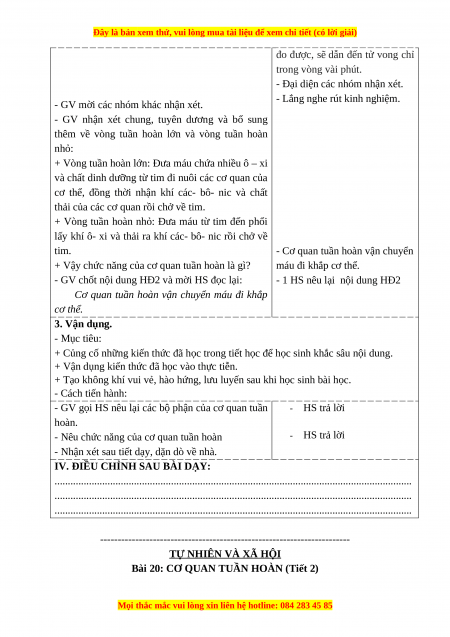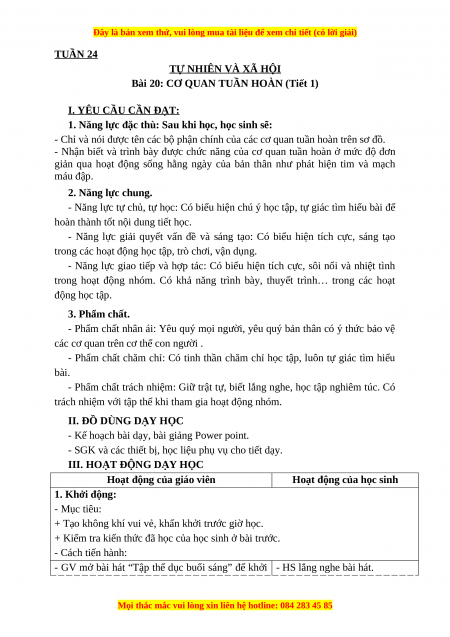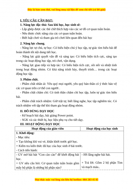 Bài 20: CƠ QUAN TUẦN HOÀN (Tiết 1) I. YÊU CẦU CẦN ĐẠT:
