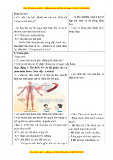 phận của cơ quan tuần hoàn. (làm việc nhóm