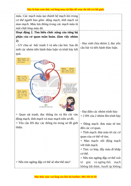 phận của cơ quan tuần hoàn. (làm việc nhóm 2)