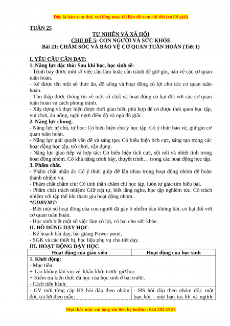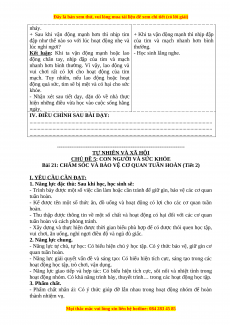 Bài 21: CHĂM SÓC VÀ BẢO VỆ CƠ QUAN TUẦN HOÀN (Tiết 1) I. YÊU CẦU CẦN ĐẠT: