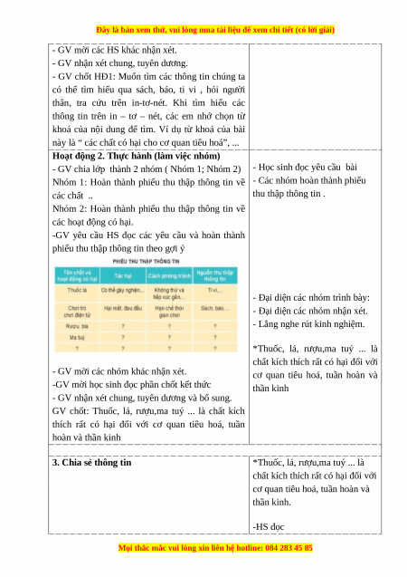 Giáo án Tự nhiên và xã hội 3 Kết nối tri thức Bài 24: Thu thập thông tin về các chất và hoạt động có hại cho sức khỏe