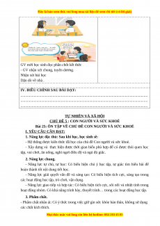 Bài 25: ÔN TẬP VỀ CHỦ ĐỀ CON NGƯỜI VÀ SỨC KHOẺ