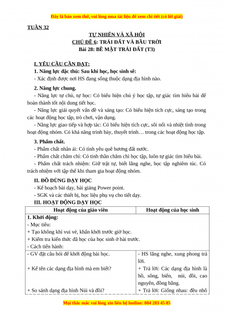 Bài 28: BỀ MẶT TRÁI ĐẤT (T3) I. YÊU CẦU CẦN ĐẠT: