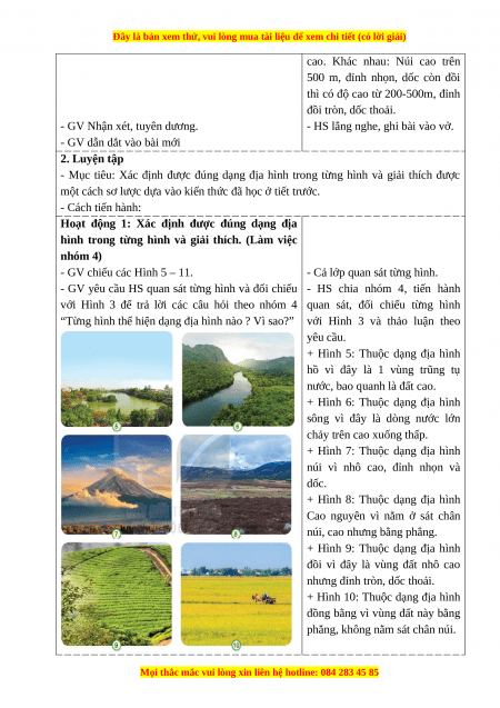 - Mục tiêu: Xác định được đúng dạng địa hình trong từng hình và giải thích được